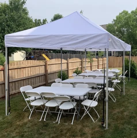Whether you're planning a birthday bash, a romantic wedding ceremony, or a fun-filled barbecue with friends and family, our 10x20 tent has got you covered, quite literally! With its sturdy metal poles, you can rest assured that your guests will be sheltered from the sun or light rain, allowing everyone to enjoy the event without worrying about the weather.