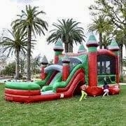 Embark on an exciting adventure with our Adventure Combo - the perfect entertainment option for children ages 4 to 14. This vibrant red and green inflatable bounce house features a spacious playing area and an exhilarating slide, guaranteeing hours of fun-filled activities for kids.